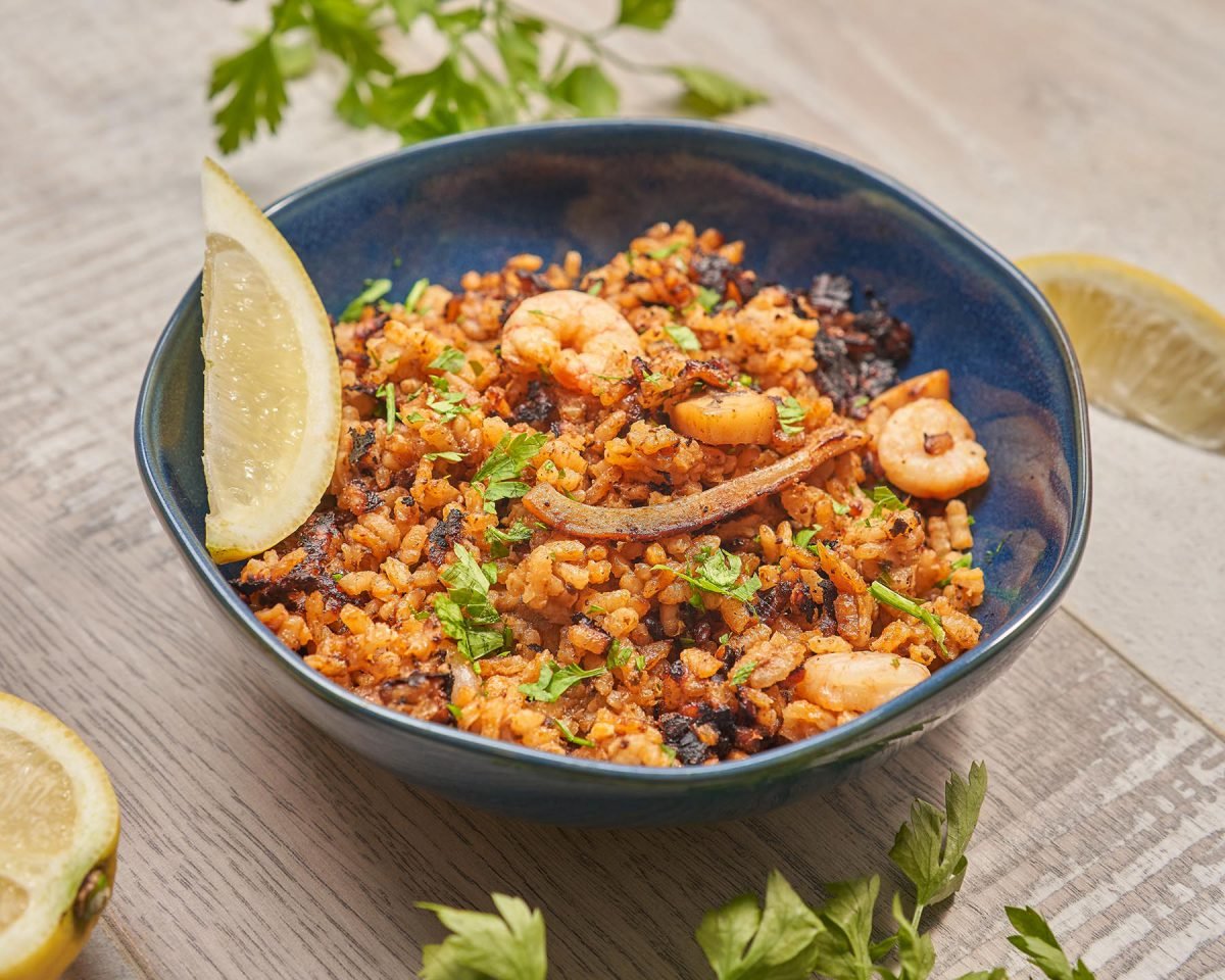 El arroz seco en paella puede parecer muy complicado, pero el proceso se simplifica bastante si no tienes que estar pendiente de remover el sofrito porque tu Chefbot lo hace por ti. Para conseguir el preciado “socarrat” no hay más truco que rematarla con el fuego bien alegre, usar como recipiente una paella de las de toda la vida y que el sofrito tenga un poco de grasa. Al poner las gambas sobre el arroz casi al final de la cocción en lugar de añadirlas al principio, conseguiremos que queden en su punto y no pasadas. Si compramos la sepia sucia y nos la preparan en la pescadería, es importante pedir la melsa, que no es otra cosa que el bazo: la sustancia de color marrón que tiene en su interior es puro sabor a mar.