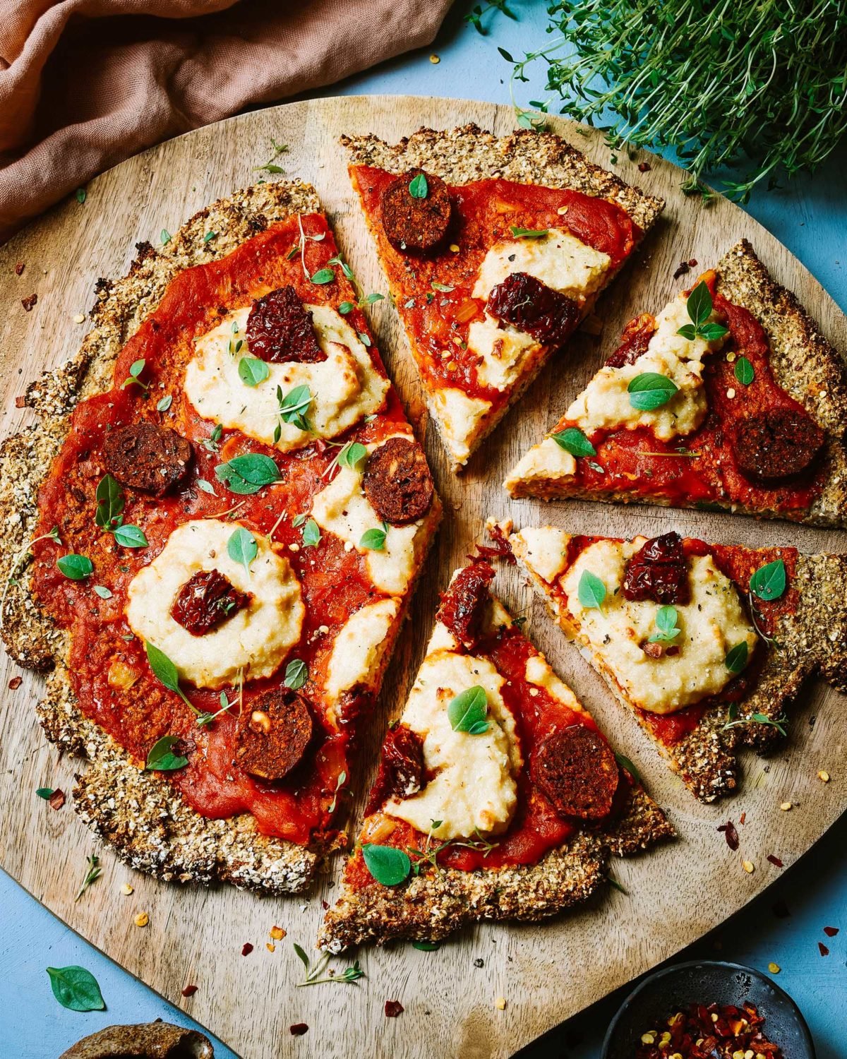 Esta crujiente y saludable base de pizza es una forma divertida, deliciosa y sencilla de tomar coliflor. Se cocina fácilmente en el horno durante 30 minutos y puedes añadir los toppings que más te gusten. *Necesitaras una bolsa de gasa o paño de gasa para retirar el agua de la coliflor.