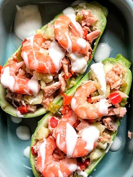 Calabacines rellenos de atún y gambas El calabacín como la berenjena, admite miles de rellenos, en esta ocasión optamos por uno ...