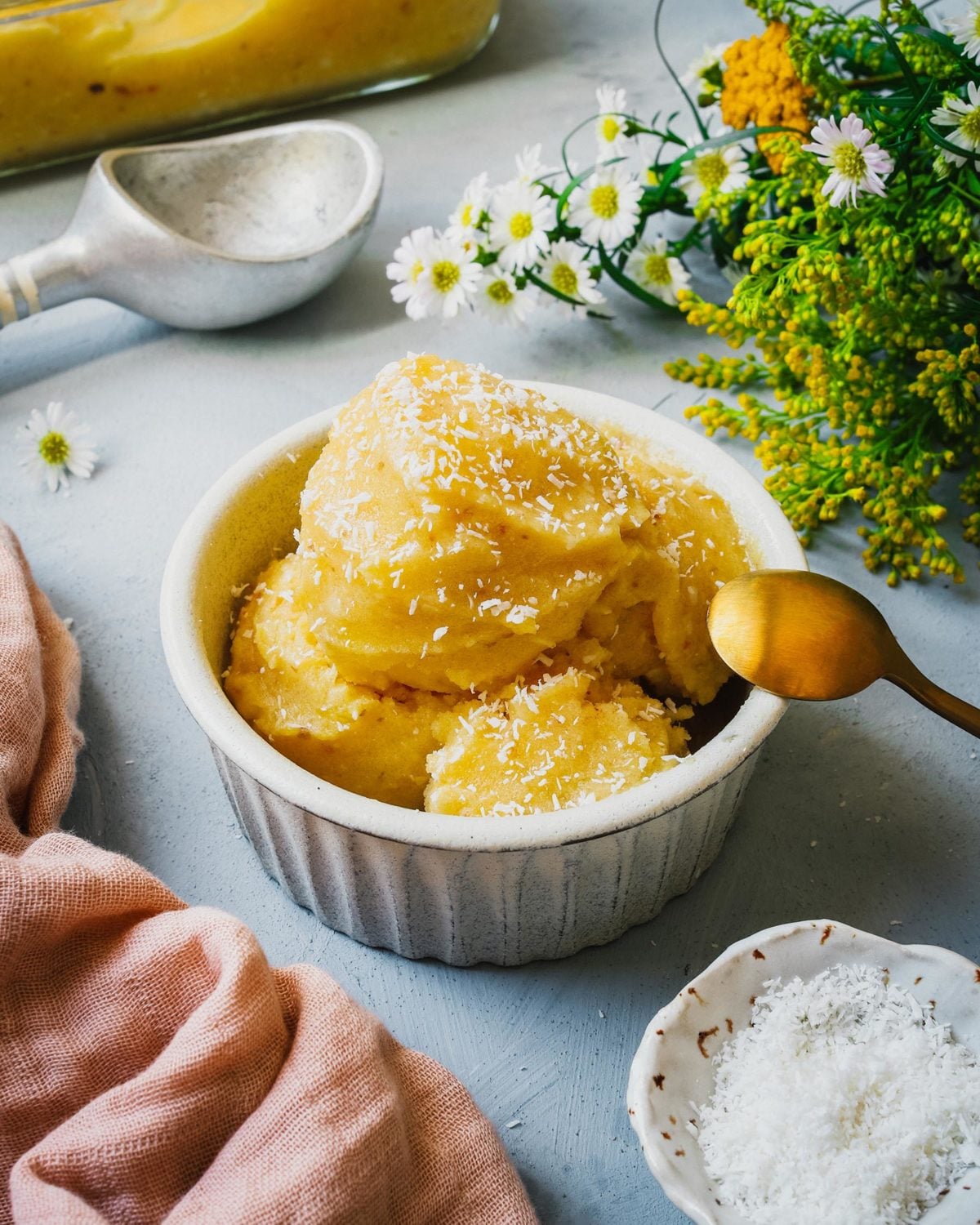 Este helado de piña colada es perfecto para toda la familia, muy fácil de preparar, la piña y el coco es una combinación deliciosa y la leche de coco le aporta mucha cremosidad a esta receta.
