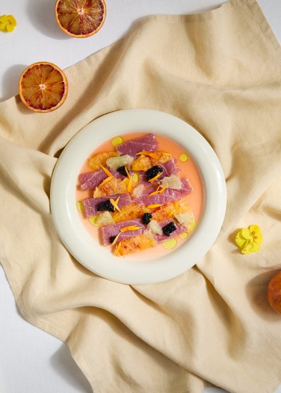 CRUDO DE ATÚN CON VINAGRETA DE LIMA, POMELO Y NARANJA Fresco, vibrante y lleno de matices cítricos, este crudo de atún es una receta ligera ...