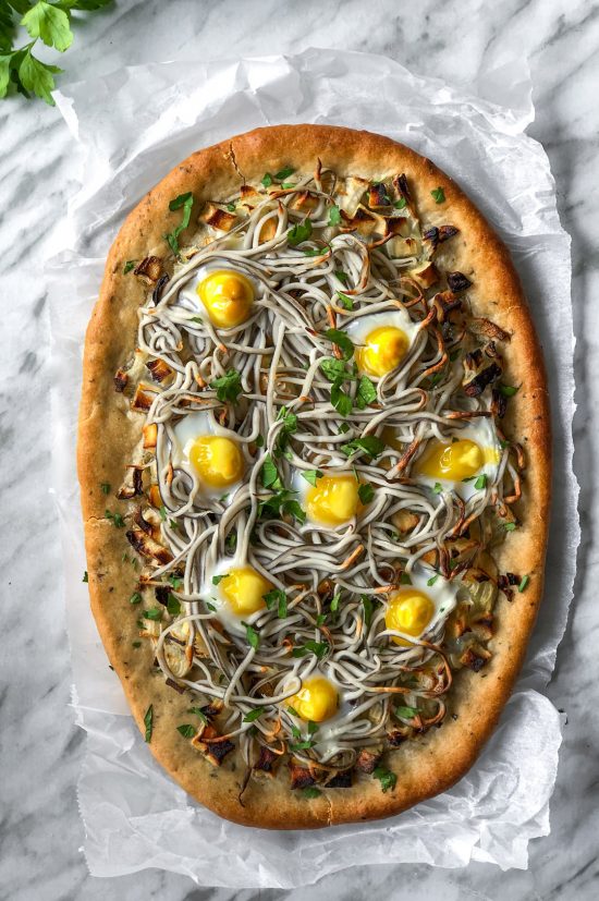 Coca a las finas hierbas con «La Gula del Norte» y huevos de codorniz Una coca perfecta para disfrutar de una comida diferente. La masa queda crujiente y el ...