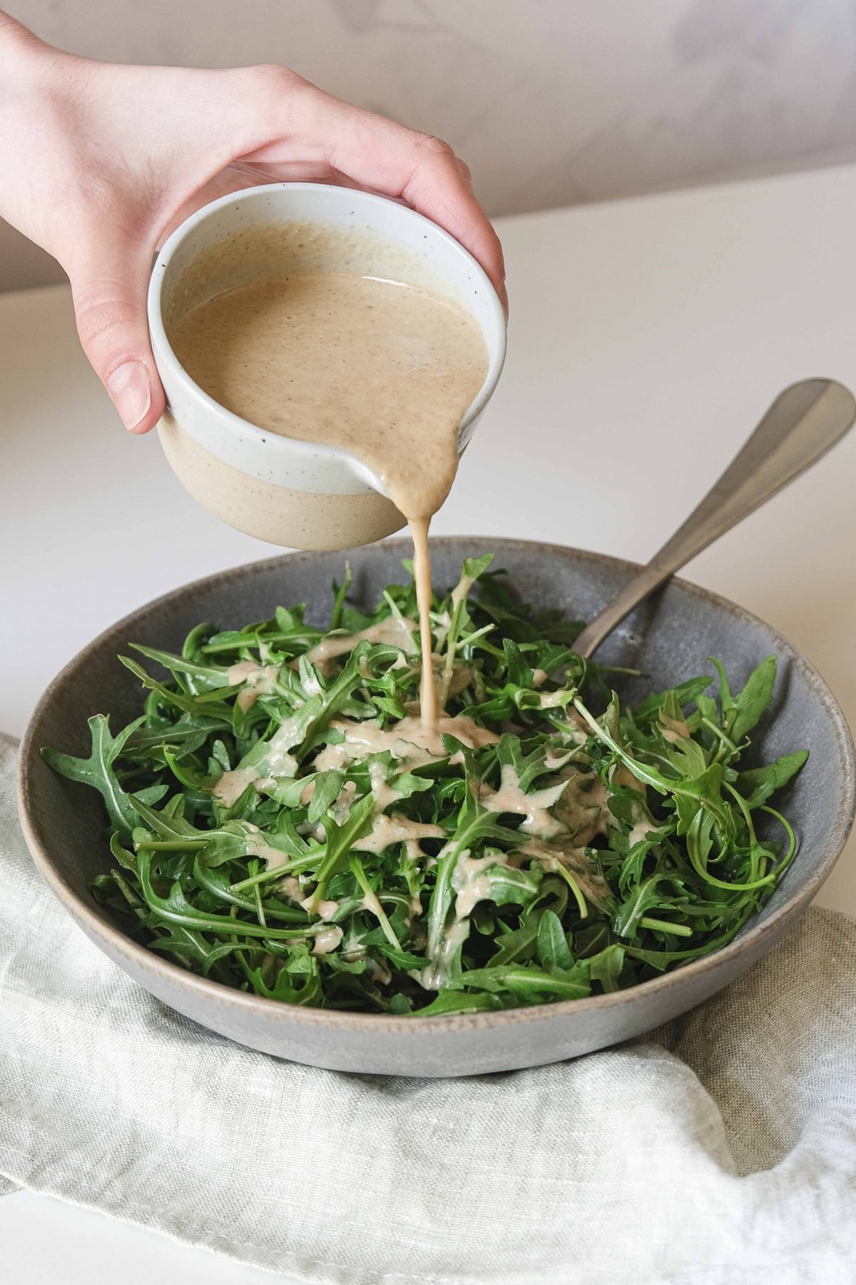 Una vinagreta vegana y saludable para alegrar tus ensaladas cada día. Tiene un sabor entre dulce y cítrico muy versátil tanto para platos fríos como calientes. Puedes probar esta vinagreta, por ejemplo, con una ensalada fresca de rúcula, lentejas y nueces o con una caliente con arroz, alubias y verduras asadas. Si sobra, guarda la vinagreta en un tarro de cristal o un bote con cierre hermético en la nevera. ¡Dura varios días sin problema!