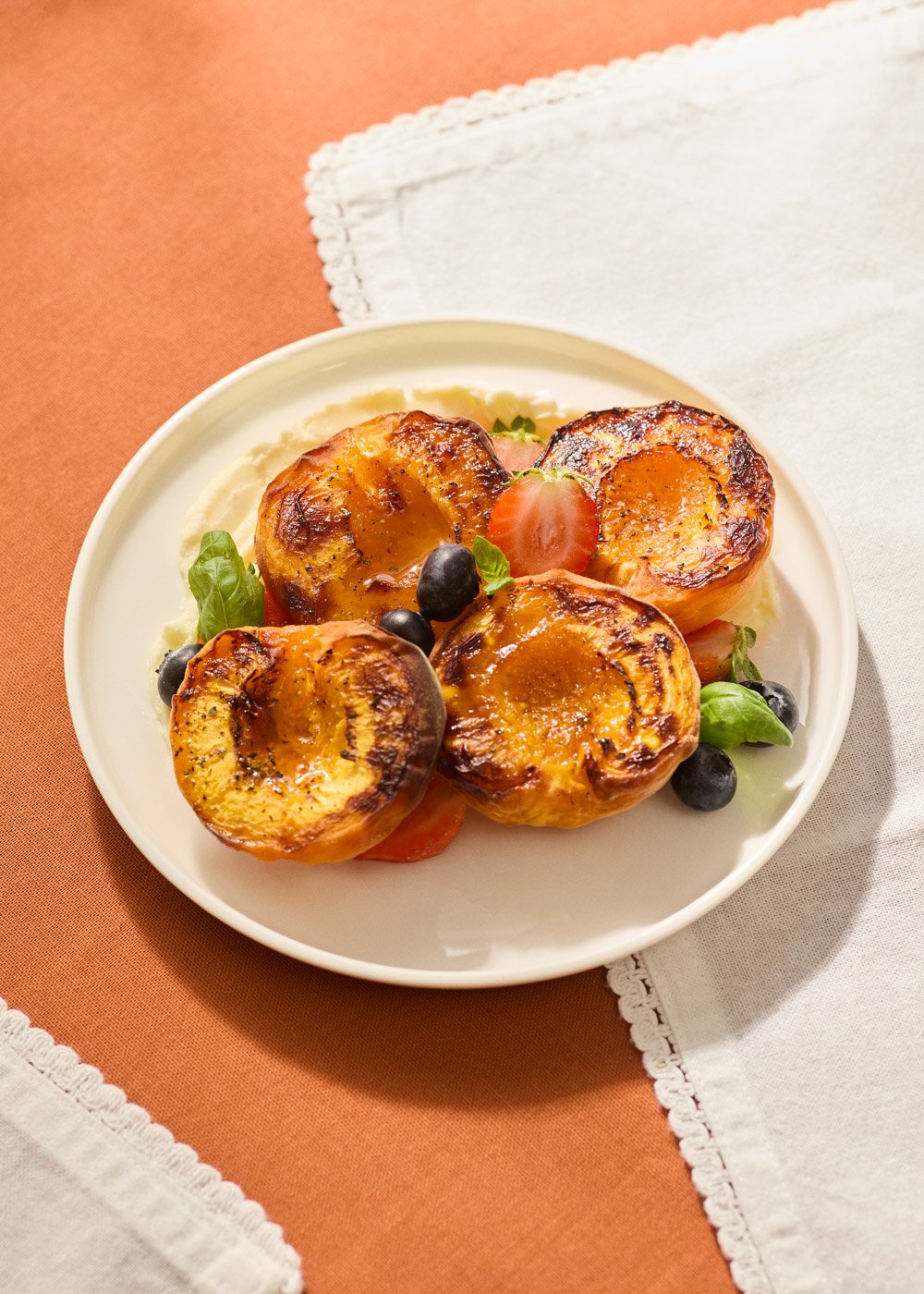 Słodkie, soczyste i lekko karmelizowane – pieczone brzoskwinie doskonale smakują z jedwabistym kremem mascarpone. To świeży deser, który łączy prostotę i elegancję.