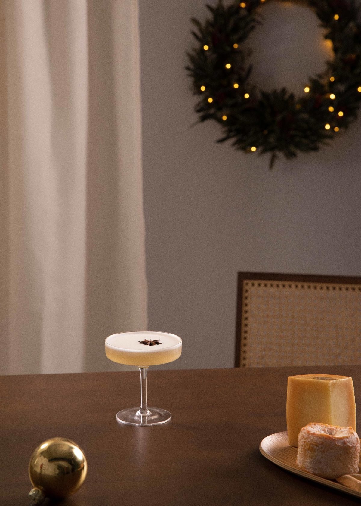 - Wszystkie składniki umieścić w shakerze koktajlowym bez lodu i energicznie wstrząsnąć. Otworzyć shaker, wypełnić lodem i ponownie wstrząsnąć, a następnie przecedzić do schłodzonej szklanki. Umieść anyż gwiazdkowy na wierzchu pianki, aby podać.