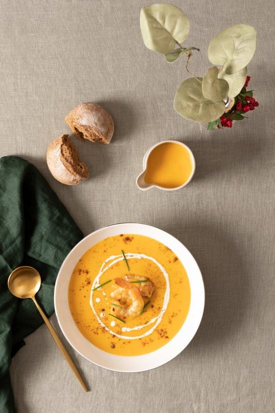 Hake and prawns cream A fish and seafood recipe perfect for Christmas Eve. An exquisite and light first course ...