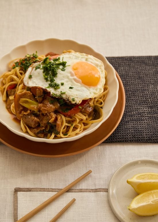 Noodles with Beef, Vegetables and Fried Egg A hearty dish that brings together the best of Asian flavours: juicy beef, crunchy vegetables ...