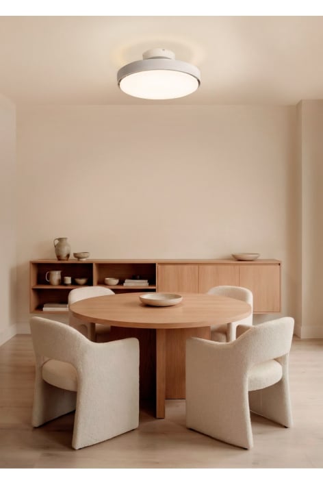Blattlos – mit den Vorteilen eines Ventilators und zwei Beleuchtungsarten. Erfrische deine Räume an heißen Tagen und genieße das ganze Jahr über vielseitiges Licht: mit einer dimmbaren Hauptbeleuchtung und einem Ambiente-Licht, das sich jedem Moment anpasst.