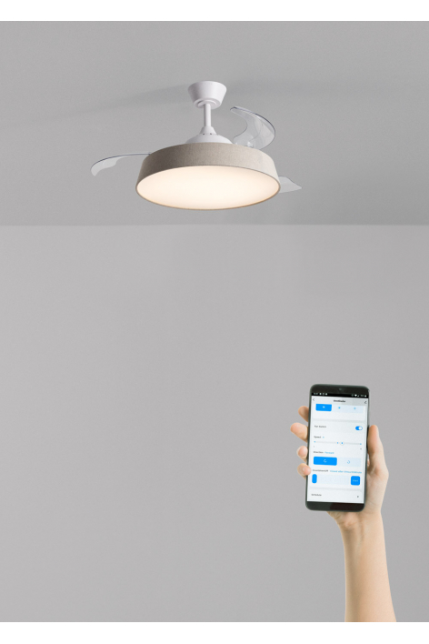 Leiser Deckenventilator mit ausfahrbaren Flügeln und 40 W DC-Brushless-Motor, der eine längere Lebensdauer garantiert. Er verfügt über 6 Geschwindigkeiten, eine Sommer-/Winterfunktion und ein integriertes LED-Licht mit 3 Farbtemperaturen. Er ist bis zu 4 Stunden programmierbar und Sie können die gewünschte Steuerung wählen: mit dem Wandcontroller oder über Ihr Smartphone mit der Create-App, wenn Sie die WiFi-Version wählen.