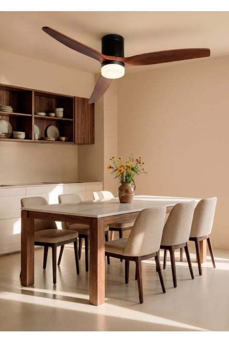 Leiser Deckenventilator mit 40 W Gleichstrommotor, Sommer-/Winterfunktion und 6 Geschwindigkeitsstufen. Die Zeitschaltuhr ist bis zu 4 Stunden programmierbar. Sie können zwischen der Option mit LED-Beleuchtung mit 3 Temperaturen oder der Option ohne Beleuchtung wählen. Sie können auch das Modell mit WLAN wählen, um es mit der Create-App von Ihrem Smartphone aus zu steuern.