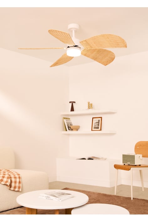 Mit seinen organischen Materialien ist dieser Deckenventilator außerdem eine schöne Lampe, die dem Raum eine warme und natürliche Note verleiht.
