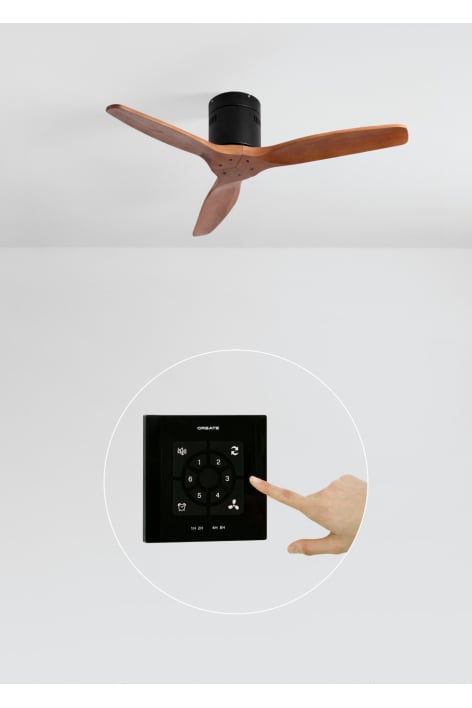 Leiser Deckenventilator mit 40 W Gleichstrommotor, Sommer-/Winterfunktion und 6 Geschwindigkeitsstufen. Die Zeitschaltuhr ist bis zu 4 Stunden programmierbar. Sie können zwischen der Option mit LED-Beleuchtung mit 3 Temperaturen oder der Option ohne Beleuchtung wählen. Sie können auch das Modell mit WLAN wählen, um es mit der Create-App von Ihrem Smartphone aus zu steuern. Alternativ können Sie sich für die Kombination mit Wandsteuerung entscheiden.