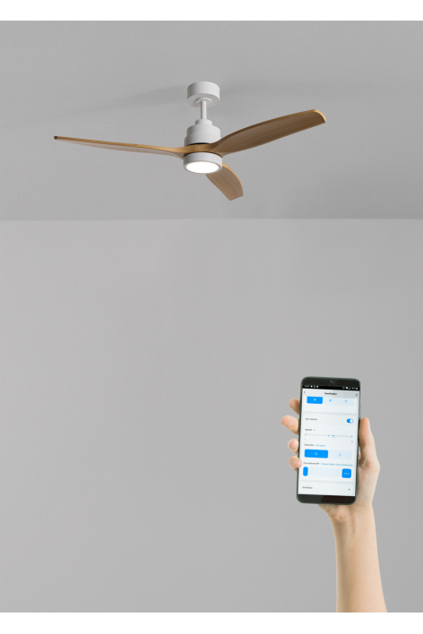 Leiser Deckenventilator mit 40 W Gleichstrommotor, Sommer-/Winterfunktion und 6 Geschwindigkeitsstufen. Die Zeitschaltuhr ist bis zu 4 Stunden programmierbar. Sie können zwischen der Option mit LED-Beleuchtung mit 3 Temperaturen oder der Option ohne Beleuchtung wählen. Sie können auch das Modell mit WLAN wählen, um es mit der Create-App von Ihrem Smartphone aus zu steuern. Alternativ können Sie sich für die Kombination mit Wandsteuerung. Außerdem sind zwei Stangengrößen enthalten, um die Höhe des Ventilators zu verstellen.