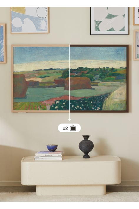 55" und 65'' Smart-TV mit QLED 4K-Technologie und mattem, blendfreiem Finish. Mit dem Kunstmodus können Sie Kunstwerke auf Ihrem Bildschirm wie in einem Bilderrahmen präsentieren. Zudem können Sie aus verschiedenen austauschbaren Rahmen wählen. Der Fernseher wird an der Wand befestigt und hinterlässt keinen Abstand dazwischen. Er verfügt über Dolby Atmos, Dolby Vision, einen Lichtsensor und Sprachsteuerung.
