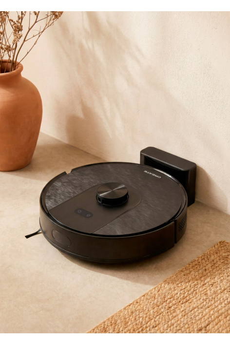 Robot aspirateur doté d’une technologie laser de cartographie des surfaces et d’un système de vidange automatique du bac à poussière lors du retour à la base de charge. Il dispose de 4 niveaux d’aspiration, de 5 modes de nettoyage et d’une puissance d’aspiration de 8000 Pa. Adapté à tous types de surfaces, y compris les sols à fort contraste comme les sols noirs, et efficace sur les tapis et moquettes. Comprend une brosse centrale, une brosse latérale, un filtre HEPA H11 et un contrôle via l’application.
