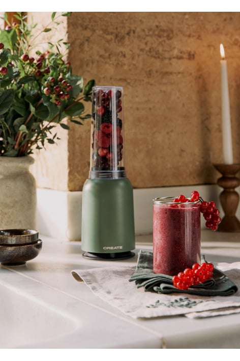 Choisissez vos ingrédients, préparez votre boisson et remplacez le couvercle muni de la lame par le couvercle vous permettant d’emporter votre boisson. Ce dernier est pourvu d’une poignée pliante pour suspendre le verre à votre sac à dos, ainsi que d’un bec pour boire à tout moment.