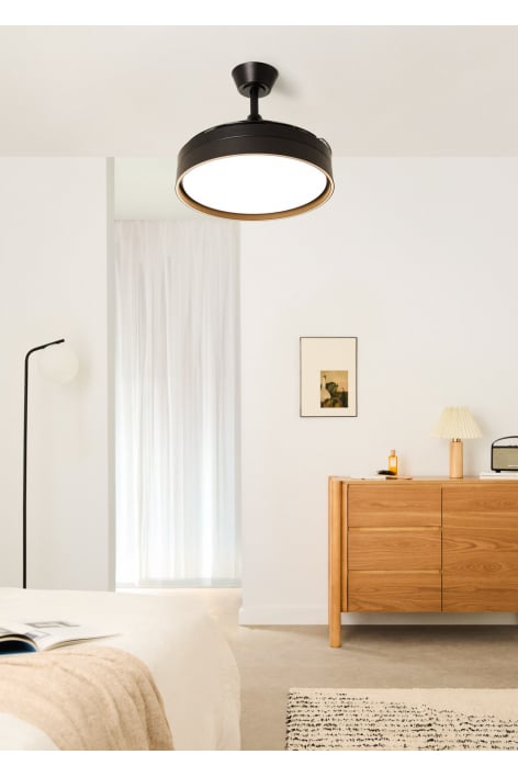 Ventilateur de plafond silencieux avec moteur DC Brushless de 40 W, garantissant une durée de vie plus longue. Il intègre une fonction été/hiver et 6 vitesses. Ses pales sont rétractables et il dispose d’une lumière LED intégrée avec 3 températures de couleur et une minuterie programmable jusqu’à 4 heures. Vous pouvez également choisir l’option WiFi pour le contrôler depuis votre téléphone portable via l’application Create.