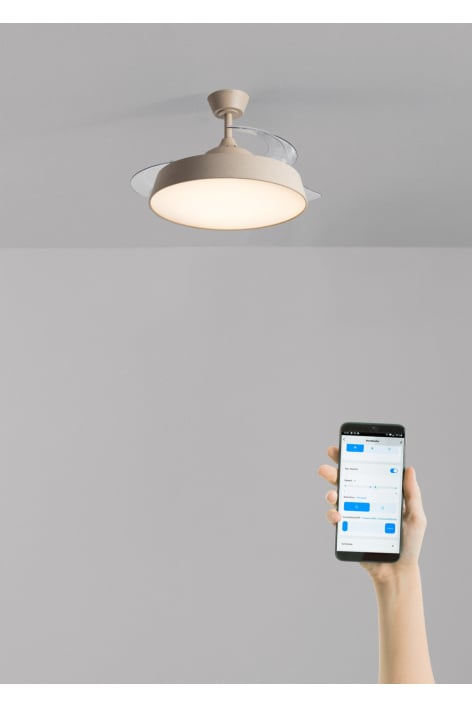 Ventilateur de plafond silencieux avec pales rétractables et moteur DC Brushless de 40 W garantissant une plus longue durée de vie. Il dispose de 6 vitesses, de la fonction été/hiver et d’une lumière LED intégrée avec 3 températures de couleur. Il est programmable jusqu’à 4 heures et vous pouvez choisir le type de contrôle souhaité : avec le contrôleur mural ou depuis votre téléphone avec l’application Create si vous choisissez le ventilateur avec WiFi.