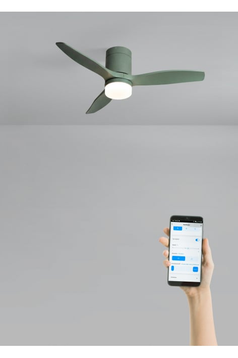Ventilateur de plafond silencieux, équipé d’un moteur DC 40 W, fonction été-hiver et 6 vitesses. Minuteur programmable jusqu’à 4 h. Vous avez le choix entre l’option avec éclairage LED de 3 températures de couleur ou l’option sans éclairage. Vous pouvez également choisir le modèle avec Wi-Fi pour le piloter depuis votre portable avec l’application Create.
