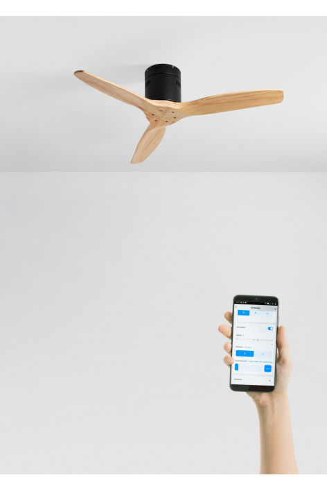 Ventilateur de plafond silencieux, équipé d’un moteur DC 40 W, fonction été-hiver et 6 vitesses. Minuteur programmable jusqu’à 4 h. Vous avez le choix entre l’option avec éclairage LED de 3 températures de couleur ou l’option sans éclairage. Vous pouvez également choisir le modèle avec Wi-Fi pour le piloter depuis votre portable avec l’application Create ou choisir la combinaison incluant la commande murale.