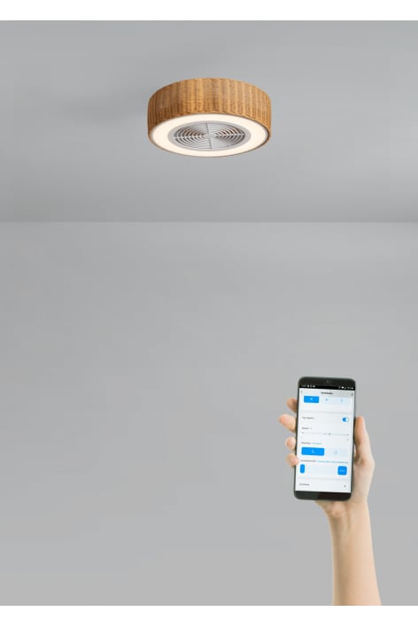Ventilateur de plafond silencieux avec moteur DC Brushless de 40W et 6 vitesses. Grâce à ses pales dissimulées, il présente un design élégant et contemporain. Il est idéal pour les pièces jusqu’à 10 m² comme les chambres, les salons ou les espaces d’étude où l’on recherche une atmosphère calme et silencieuse. Il dispose d’une lumière LED intégrée avec 3 températures de couleur et d’une minuterie programmable jusqu’à 4 h. Vous pouvez également choisir le modèle avec WiFi pour le contrôler depuis votre téléphone portable via l’application Create ou depuis le contrôleur mural.