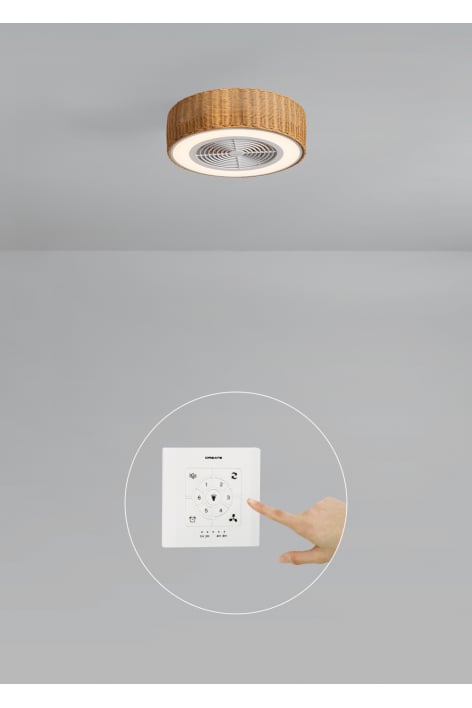 Ventilateur de plafond silencieux avec moteur DC Brushless de 40W et 6 vitesses. Grâce à ses pales dissimulées, il présente un design élégant et contemporain. Il est idéal pour les pièces jusqu’à 10 m² comme les chambres, les salons ou les espaces d’étude où l’on recherche une atmosphère calme et silencieuse. Il dispose d’une lumière LED intégrée avec 3 températures de couleur et d’une minuterie programmable jusqu’à 4 h. Vous pouvez également choisir le modèle avec WiFi pour le contrôler depuis votre téléphone portable via l’application Create ou depuis le contrôleur mural.