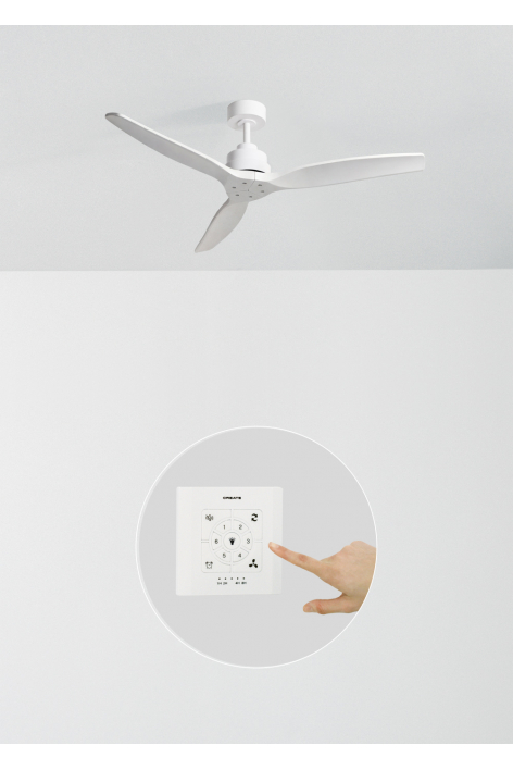 Ventilateur de plafond silencieux, équipé d’un moteur DC 40 W, fonction été-hiver et 6 vitesses. Minuteur programmable jusqu’à 4 h. Vous avez le choix entre l’option avec éclairage LED de 3 températures de couleur ou l’option sans éclairage. Vous pouvez également choisir le modèle avec Wi-Fi pour le piloter depuis votre portable avec l’application Create ou choisir la combinaison incluant la commande murale. De plus, deux tailles de tige sont incluses pour régler la hauteur du ventilateur.