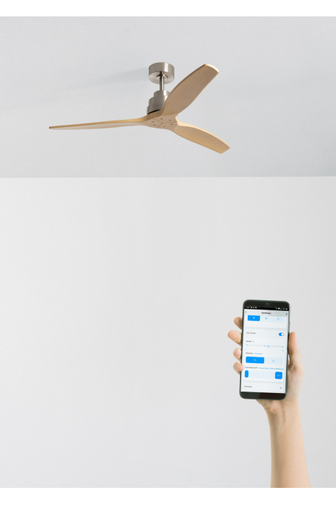 Ventilateur de plafond silencieux, équipé d’un moteur DC 40 W, fonction été-hiver et 6 vitesses. Minuteur programmable jusqu’à 4 h. Vous avez le choix entre l’option avec éclairage LED de 3 températures de couleur ou l’option sans éclairage. Vous pouvez également choisir le modèle avec Wi-Fi pour le piloter depuis votre portable avec l’application Create ou choisir la combinaison incluant la commande murale. De plus, deux tailles de tige sont incluses pour régler la hauteur du ventilateur.