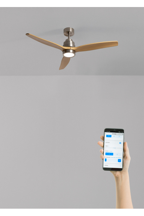 Ventilateur de plafond silencieux, équipé d’un moteur DC 40 W, fonction été-hiver et 6 vitesses. Minuteur programmable jusqu’à 4 h. Vous avez le choix entre l’option avec éclairage LED de 3 températures de couleur ou l’option sans éclairage. Vous pouvez également choisir le modèle avec Wi-Fi pour le piloter depuis votre portable avec l’application Create ou choisir la combinaison incluant la commande murale. De plus, deux tailles de tige sont incluses pour régler la hauteur du ventilateur.