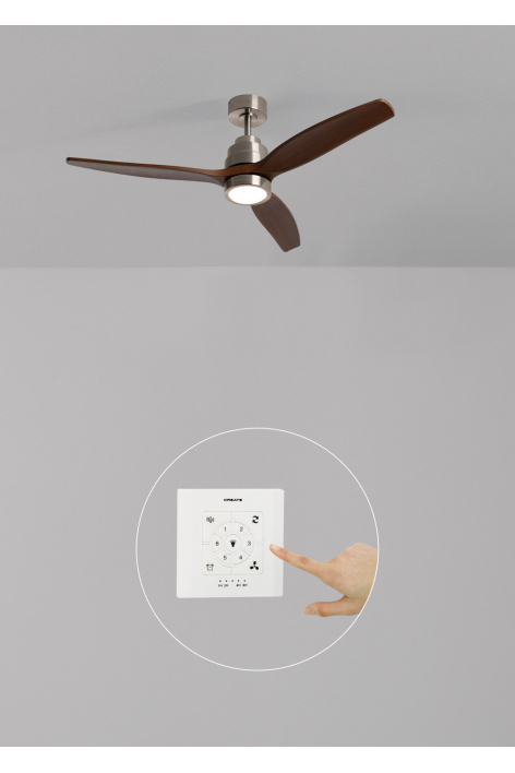 Ventilateur de plafond silencieux, équipé d’un moteur DC 40 W, fonction été-hiver et 6 vitesses. Minuteur programmable jusqu’à 4 h. Vous avez le choix entre l’option avec éclairage LED de 3 températures de couleur ou l’option sans éclairage. Vous pouvez également choisir le modèle avec Wi-Fi pour le piloter depuis votre portable avec l’application Create ou choisir la combinaison incluant la commande murale. De plus, deux tailles de tige sont incluses pour régler la hauteur du ventilateur.
