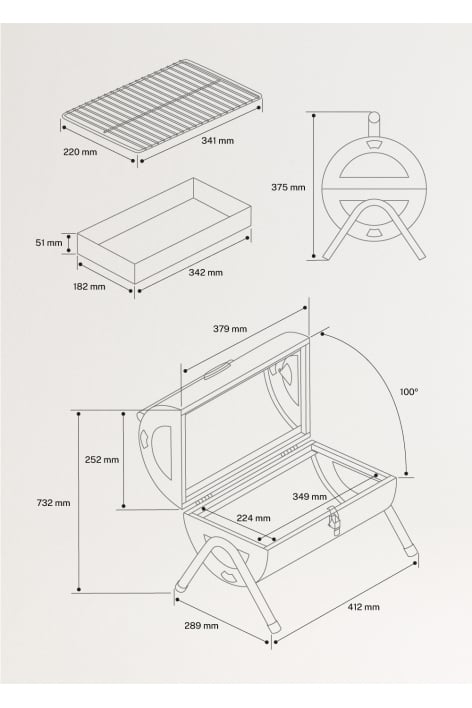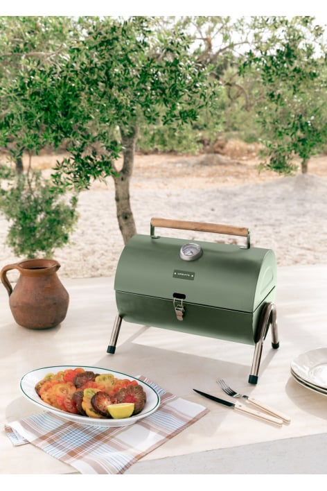 Barbecue affumicatore in acciaio laccato, compatto e portatile È leggero e ha le dimensioni perfette per essere trasportato. Dispone, inoltre, di un manico e di gambe con piedini in gomma antiscivolo. Include un regolatore di temperatura e due sistemi di uscita dell'aria per regolare l'intensità della brace.