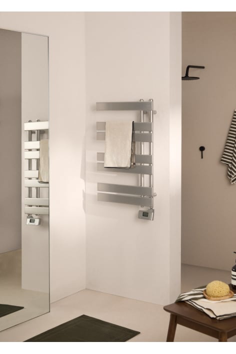 A differenza degli scaldasalviette tradizionali, collegati a un sistema di riscaldamento centralizzato, gli scaldasalviette elettrici a olio sono generalmente più facili da installare. Puoi scegliere tra modelli con termostato e modelli manuali. I modelli con termostato ti permettono di regolare la temperatura, mentre i modelli manuali mantengono sempre la stessa temperatura. Oltre a mantenere gli asciugamani asciutti e il bagno a una temperatura piacevole durante tutto l'anno, fungono anche da elemento decorativo e migliorano l'estetica del tuo bagno.