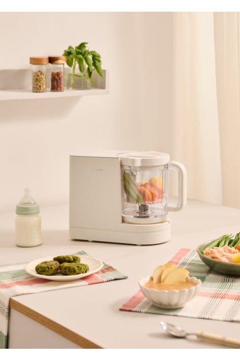 Ottimizza la tua routine con un unico robot: cottura a vapore, tritatura, riscaldamento biberon, sterilizzazione, mantenimento in caldo e decalcificazione. Cuoci verdure o carne e tritale per preparare pappe.