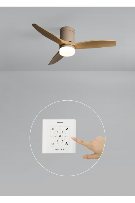 Ventilatore da soffitto silenzioso con motore DC 40 W, funzione estate/inverno e 6 velocità. Dispone di un timer programmabile in anticipo fino a 4 ore. Puoi scegliere tra l'opzione con luce LED a 3 temperature o l'opzione senza luce. Puoi anche scegliere il modello con wi-fi per controllarlo dal tuo telefono tramite l'app Create.
