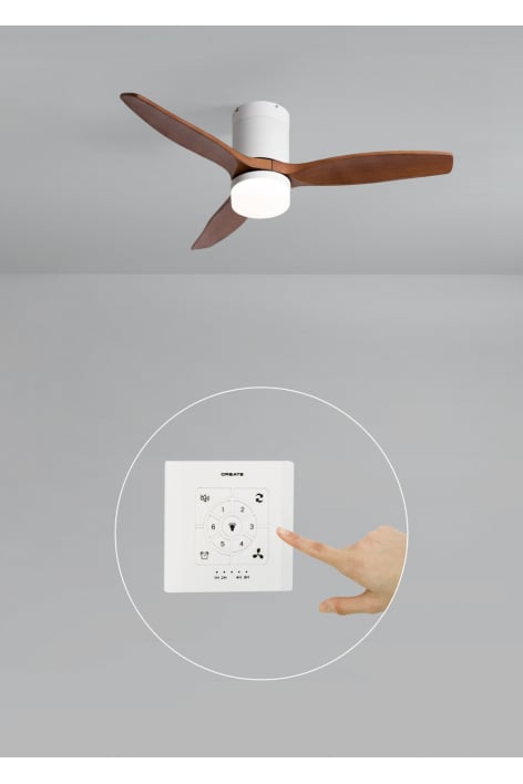 Ventilatore da soffitto silenzioso con motore DC 40 W, funzione estate/inverno e 6 velocità. Dispone di un timer programmabile in anticipo fino a 4 ore. Puoi scegliere tra l'opzione con luce LED a 3 temperature o l'opzione senza luce. Puoi anche scegliere il modello con wi-fi per controllarlo dal tuo telefono tramite l'app Create.