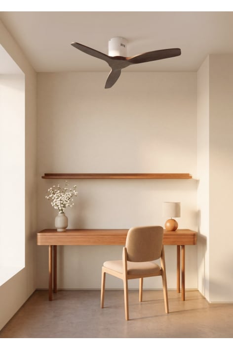 Ventilatore da soffitto silenzioso con motore DC 40 W, funzione estate/inverno e 6 velocità. Dispone di un timer programmabile in anticipo fino a 4 ore. Puoi scegliere tra l'opzione con luce LED a 3 temperature o l'opzione senza luce. Puoi anche scegliere il modello con wi-fi per controllarlo dal tuo telefono tramite l'app Create o, al contrario, preferire la combinazione con il controller a parete.