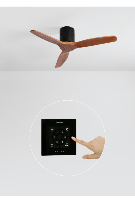 Ventilatore da soffitto silenzioso con motore DC 40 W, funzione estate/inverno e 6 velocità. Dispone di un timer programmabile in anticipo fino a 4 ore. Puoi scegliere tra l'opzione con luce LED a 3 temperature o l'opzione senza luce. Puoi anche scegliere il modello con wi-fi per controllarlo dal tuo telefono tramite l'app Create o, al contrario, preferire la combinazione con il controller a parete.