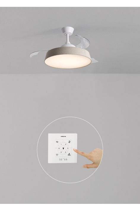 Ventilatore da soffitto silenzioso con pale retrattili e motore DC Brushless da 40 W che garantisce una maggiore durata. Dispone di 6 velocità, funzione estate/inverno e luce LED integrata con 3 temperature di colore. È programmabile fino a 4 ore e puoi scegliere il tipo di controllo che preferisci: con il controller a parete oppure dal tuo smartphone tramite l’app Create se scegli il ventilatore con WiFi.