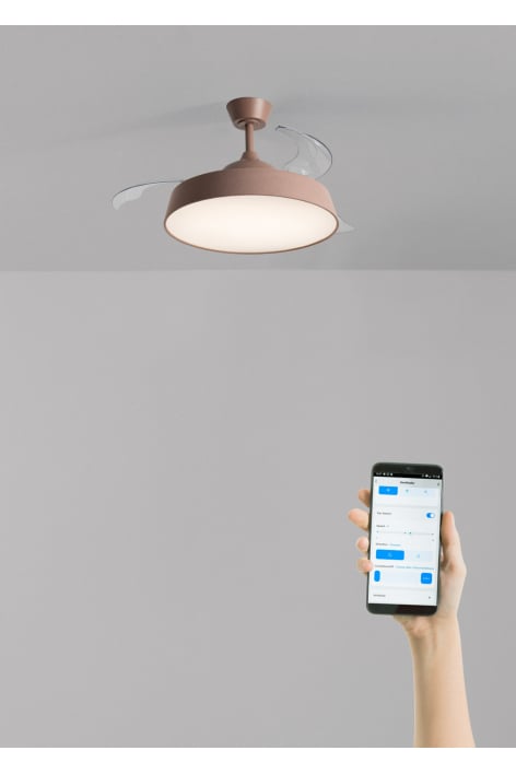 Ventilatore da soffitto silenzioso con pale retrattili e motore DC Brushless da 40 W che garantisce una maggiore durata. Dispone di 6 velocità, funzione estate/inverno e luce LED integrata con 3 temperature di colore. È programmabile fino a 4 ore e puoi scegliere il tipo di controllo che preferisci: con il controller a parete oppure dal tuo smartphone tramite l’app Create se scegli il ventilatore con WiFi.