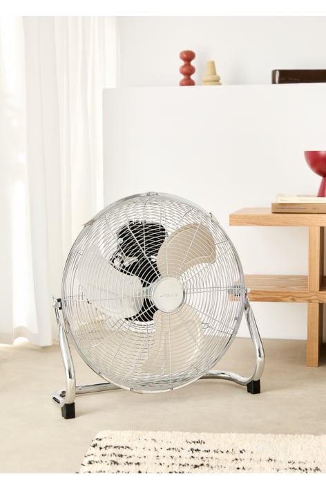Ventilatore industriale da pavimento che genera un grande flusso d'aria potente a qualsiasi delle sue 3 velocità. Dispone della funzione di inclinazione e di un motore in rame al 100% che riduce i consumi. Molto leggero, super silenzioso e stabile grazie ai piedini antiscivolo.