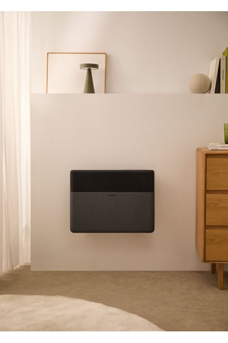 Deze convector past zich aan jouw ritme, jouw ruimtes en jouw levensstijl aan: zet hem aan onderweg naar huis zodat het warm is bij aankomst, of stel de gewenste temperatuur in zonder van de bank te komen. Hij is stil, zodat je hem aan kunt laten staan tijdens werk of ontspanning.