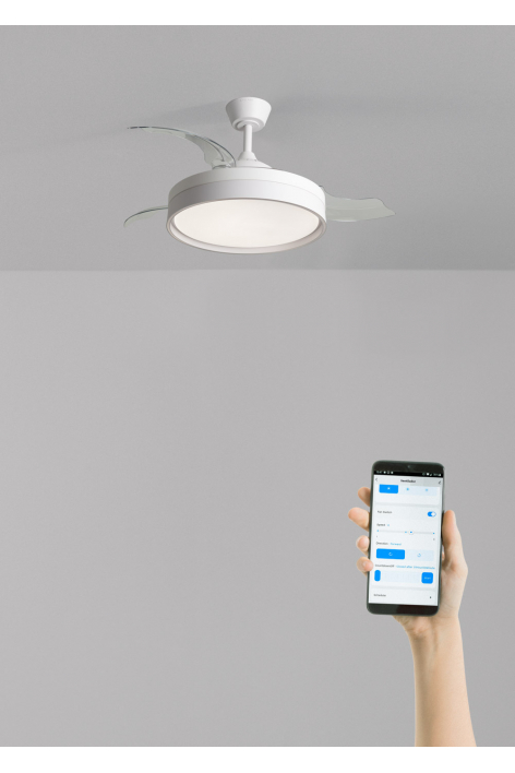 Stille plafondventilator met een 40 W DC Brushless-motor, die een langere levensduur garandeert. Hij beschikt over een zomer-/winterfunctie en 6 snelheden. De bladen zijn intrekbaar en hij heeft een geïntegreerd LED-licht met 3 kleurtemperaturen en een programmeerbare timer tot 4 uur. Daarnaast kun je kiezen voor de WiFi-optie om hem via de Create-app vanaf je smartphone te bedienen.