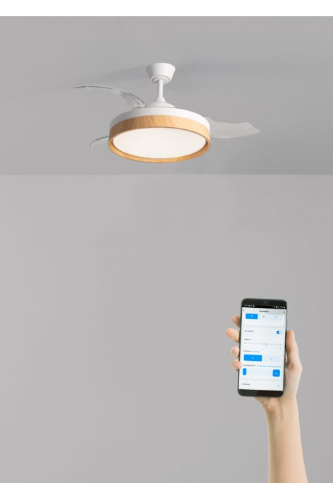 Stille plafondventilator met een 40 W DC Brushless-motor, die een langere levensduur garandeert. Hij beschikt over een zomer-/winterfunctie en 6 snelheden. De bladen zijn intrekbaar en hij heeft een geïntegreerd LED-licht met 3 kleurtemperaturen en een programmeerbare timer tot 4 uur. Daarnaast kun je kiezen voor de WiFi-optie om hem via de Create-app vanaf je smartphone te bedienen.