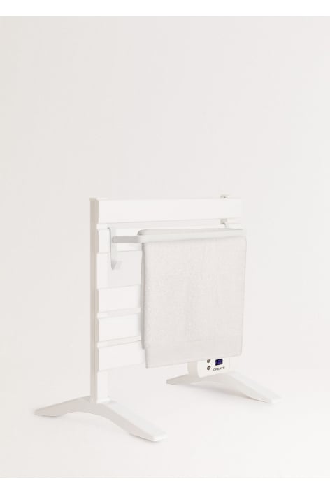Mini elektryczny wieszak na ręczniki charakteryzujący się niskim zużyciem energii, dzięki któremu Twoje ręczniki będą suche i ciepłe. Dzięki swoim rozmiarom zajmuje niewiele miejsca i możesz zdecydować, czy powiesić go na ścianie, czy dodać nóżki i ustawić go na podłodze. Masz również możliwość zamontowania dodatkowej półki, aby zwiększyć funkcjonalność urządzenia.