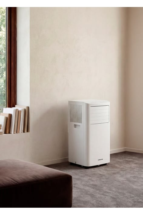 Przenośny klimatyzator 4 w 1: klimatyzacja 12000 BTU (odpowiednik 3000 frigorías), pompa ciepła, osuszacz (do 56 L/dzień) i wentylator. Obejmuje powierzchnię do 26 m² i ma elegancki, nowoczesny design, dzięki czemu świetnie sprawdzi się w dużych salonach, loftach lub przestronnych biurach. Posiada 24-godzinny timer, pilot oraz połączenie z aplikacją Create. W zestawie znajduje się kit do odprowadzania powietrza do okien przesuwnych.