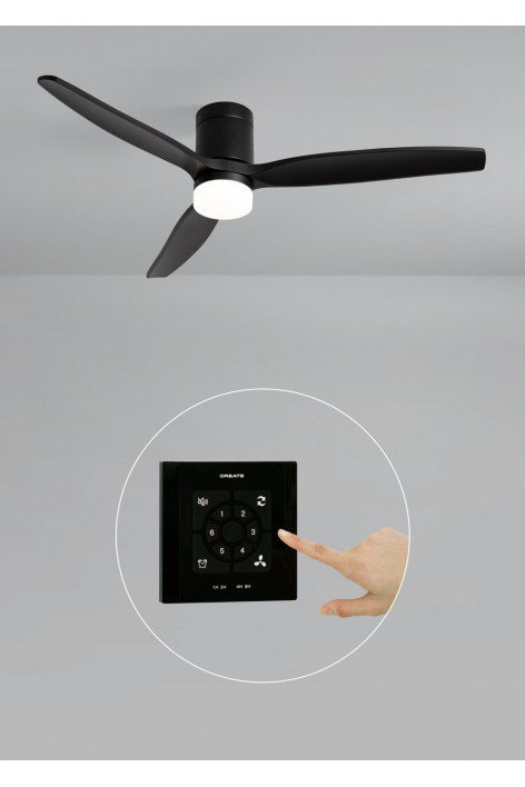 Cichy wentylator sufitowy z silnikiem prądu stałego o mocy 40 W, funkcją lato/ zima i 6 prędkościami. Z możliwością programowania do 4 godz. Można wybierać pomiędzy opcją z oświetlaniem LED z 3 temperaturami barwowymi lub opcją bez lampy. Możesz także wybrać model z Wi-Fi i sterować nim za pomocą telefonu komórkowego z poziomu aplikacji Create.
