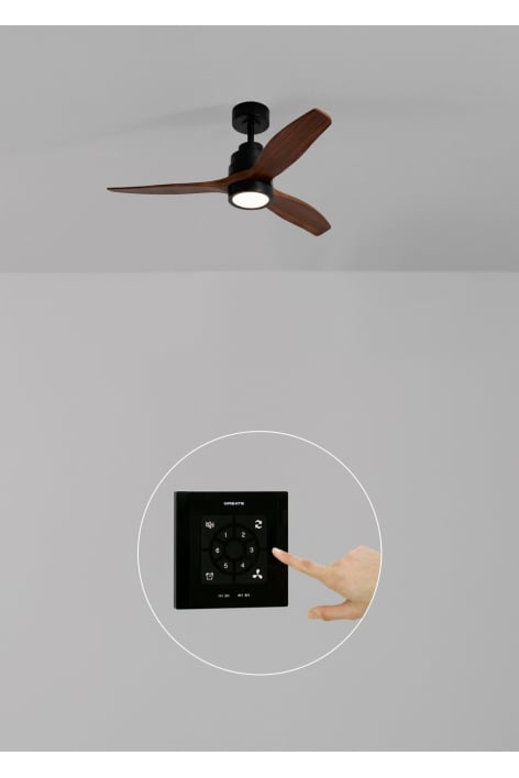 Cichy wentylator sufitowy z silnikiem prądu stałego o mocy 40 W, funkcją lato/ zima i 6 prędkościami. Z możliwością programowania do 4 godz. Można wybierać pomiędzy opcją z oświetlaniem LED z 3 temperaturami barwowymi lub opcją bez lampy. Możesz także wybrać model z Wi-Fi i sterować nim za pomocą telefonu komórkowego z poziomu aplikacji Create, lub bez tej funkcji, ale z panelem sterowania do umieszczenia na ścianie. Dodatkowo w zestawie znajdują się dwa rozmiary pręta do regulacji wysokości wentylatora.