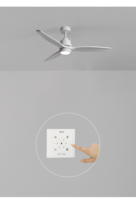 Cichy wentylator sufitowy z silnikiem prądu stałego o mocy 40 W, funkcją lato/ zima i 6 prędkościami. Z możliwością programowania do 4 godz. Można wybierać pomiędzy opcją z oświetlaniem LED z 3 temperaturami barwowymi lub opcją bez lampy. Możesz także wybrać model z Wi-Fi i sterować nim za pomocą telefonu komórkowego z poziomu aplikacji Create, lub bez tej funkcji, ale z panelem sterowania do umieszczenia na ścianie. Dodatkowo w zestawie znajdują się dwa rozmiary pręta do regulacji wysokości wentylatora.