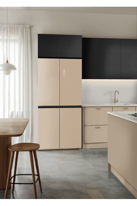 Crie harmonia na sua cozinha graças ao seu acabamento em vidro mate disponível numa ampla gama de cores. O seu design elegante e fácil de integrar no ambiente valoriza a divisão e a sua superfície anti-impressões digitais permite que o frigorífico mantenha a sua tonalidade original. Além disso, as marcas e manchas são reduzidas, mantendo o exterior do frigorífico limpo e mate sem qualquer esforço.