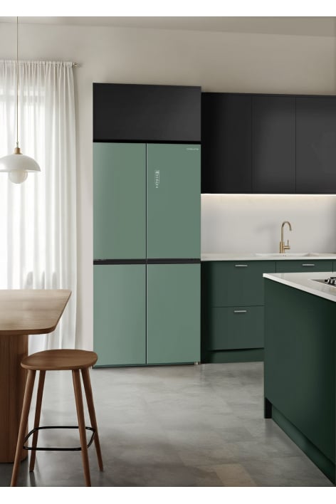 Crie harmonia na sua cozinha graças ao seu acabamento em vidro mate disponível numa ampla gama de cores. O seu design elegante e fácil de integrar no ambiente valoriza a divisão e a sua superfície anti-impressões digitais permite que o frigorífico mantenha a sua tonalidade original. Além disso, as marcas e manchas são reduzidas, mantendo o exterior do frigorífico limpo e mate sem qualquer esforço.